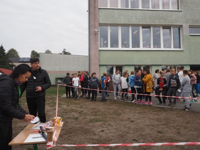 Uczestnicy imprezy startowali w 8 kategoriach z podziałem na dziewczęta i chłopców. Dystans z jakim się zmierzyli, to odpowiednio do grupy wiekowej 300, 600 i 1000 metrów. Najlepsi sportowcy będą reprezentować nasza szkołę w Powiatowych Sztafetowych Biegach Przełajowych Dziewcząt i Chłopców. Wśród biegających uczniów nie zabrakło także nauczycieli. Pani Dyrektor Renata Dahmani dwukrotnie biegła z najmłodszymi w naszej szkole, czyli klasą pierwszą, natomiast pan Tomasz Molenda pokonał dystans 1000 m wraz z chłopcami z klasy 7. Była radość, śmiech i dobra zabawa oraz to, co w sporcie jest najistotniejsze - zdrowa rywalizacja