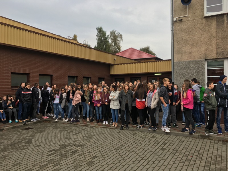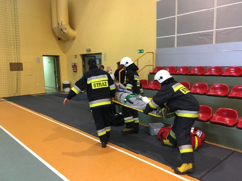 Po sprawnej ewakuacji uczniów i pracowników szkoły odbył się pokaz sprzętu ratowniczo - gaśniczego będącego na wyposażeniu jednostki. Duże zainteresowanie wzbudził prezentowany kombinezon z aparatem tlenowym wykorzystywany w zadymionych pomieszczeniach. Na zakończenie uczniowie mogli przekonać się o praktycznym zastosowaniu armatki wodnej.