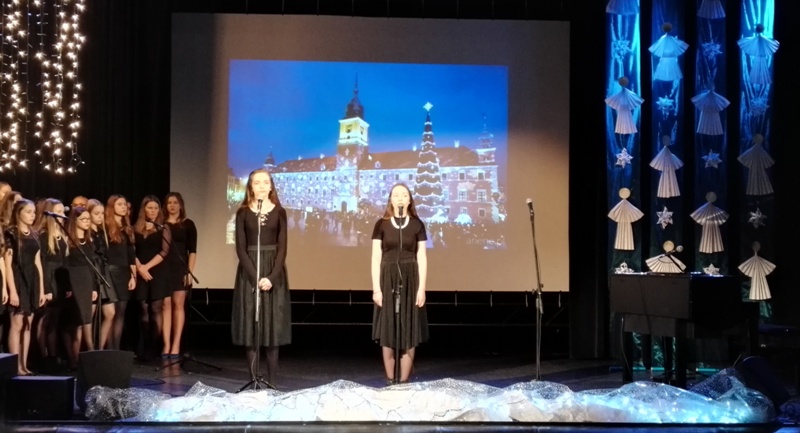 „Koncert kolęd” połączony z kiermaszem bożonarodzeniowym to jedno z finałowych działań tego programu. Motywem przewodnim uczyniliśmy polskie tradycje i obyczaje, które najpiękniej znajdują swe odbicie w kolędach i wierszach. Uczniowie klas drugich i trzecich gimnazjum oraz klasy pierwszej, drugiej i trzeciej liceum oraz zaproszeni specjalnie przedstawiciele chóru „Canto choralis” przepięknie śpiewali popularne i mniej znane kolędy i pastorałki. Na szczególne wyróżnienie zasługują solistki: Karolina Andrusieczko, Wiktoria Pachulska, Paula Heft, Patrycja Nowicka, Zuzanna Bućkowska, pani Karolina Gierszewska, oraz panie Magdalena Nowak i Justyna Kapuścińska (instruktorki chóru).