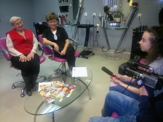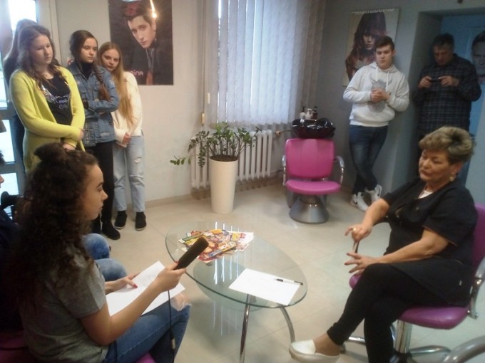 Przeprowadziliśmy wywiad dotyczący przesiedleń z Ukrainy po II wojnie światowej. Odpowiedzi na pytania udzielała babcia naszego ucznia uczęszczającego do 3 klasy gimnazjum - pani Maria Kałużna. Zdecydowanie nikt nie spodziewał się tak zadawalających efektów. Poświęciliśmy na to spotkanie ponad godzinę. Pani Maria czekała na nas w swoim salonie fryzjerskim. Gdy dotarliśmy na miejsce, powitała wszystkich bardzo serdecznie. Wyciągnęliśmy kamerę filmową, mikrofon, dobraliśmy odpowiednie tło i sprawnie przeszliśmy do głównej części wywiadu.