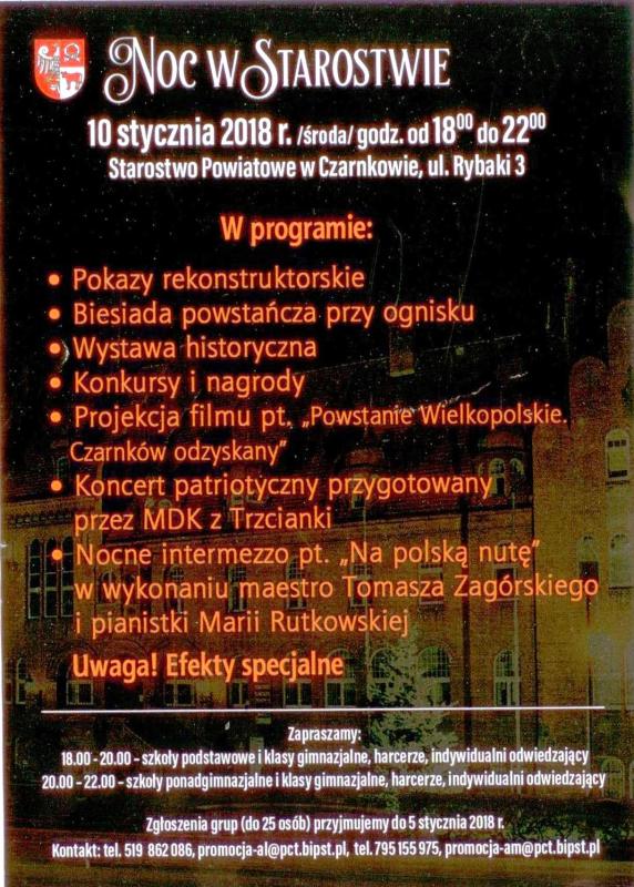 Już po raz drugi grupa prawie 40. uczniów liceum i gimnazjum Zespołu Szkół Ogólnokształcących uczestniczyła 10 stycznia w żywej lekcji historii o Powstaniu Wielkopolskim w naszym powiecie pod hasłem Noc w Starostwie.