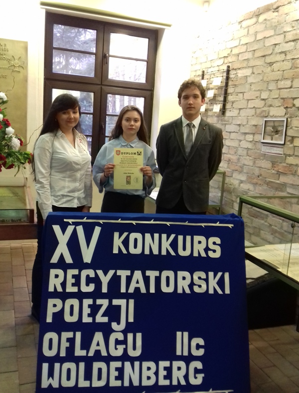 Tym bardziej cieszy sukces Julii Małeckiej kl. 3b, która została laureatką jednego z trzech równorzędnych pierwszych miejsc za poruszającą interpretację tekstu „Nike zwycięska” Aleksandra Bema. Gratulujemy!