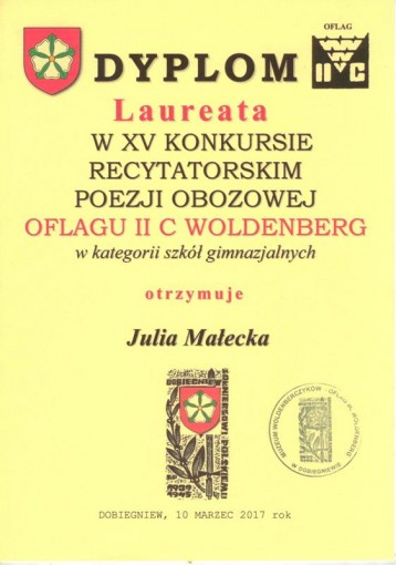 W piątek, 10 marca z interpretacją wierszy polskich oficerów więzionych tam w czasie II wojny światowej zmierzyła się wyjątkowo duża grupa młodzieży ze szkół podstawowych i gimnazjów trzech województw: lubuskiego, zachodnio-pomorskiego i wielkopolskiego, w tym troje krzyskich gimnazjalistów.Jubileuszowe zmagania, zwłaszcza w grupie gimnazjalistów, stały na szczególnie wysokim poziomie.