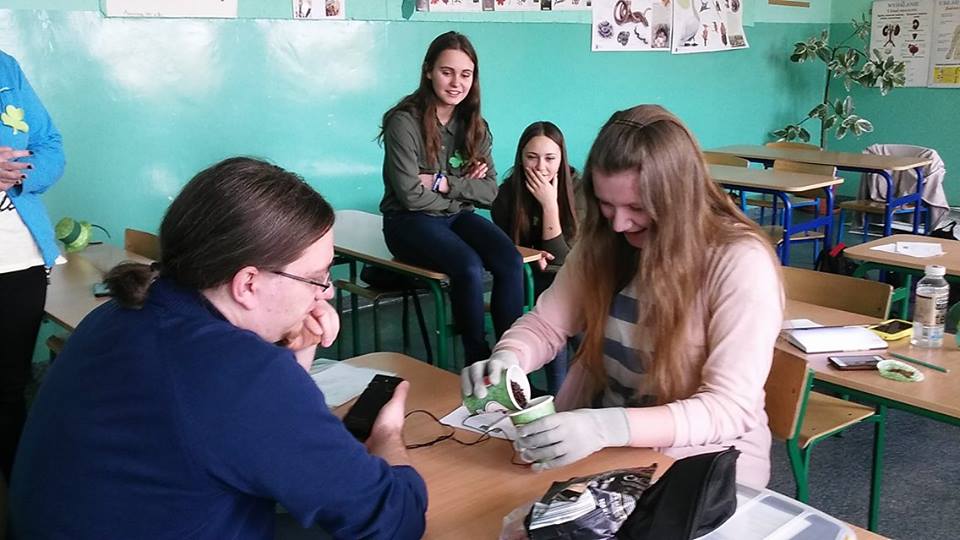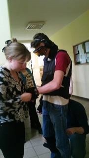 W drugiej części spotkania młodzież miała możliwość przymierzenia kombinezonu starości, rękawiczek symulujących chorobę Parkinsona i okularów imitujących choroby oczu. Dzięki tym praktycznym zajęciom członkowie klubu mogli na własnej skórze odczuć czym jest starość i jak to jest mieć kilkadziesiąt lat więcej.