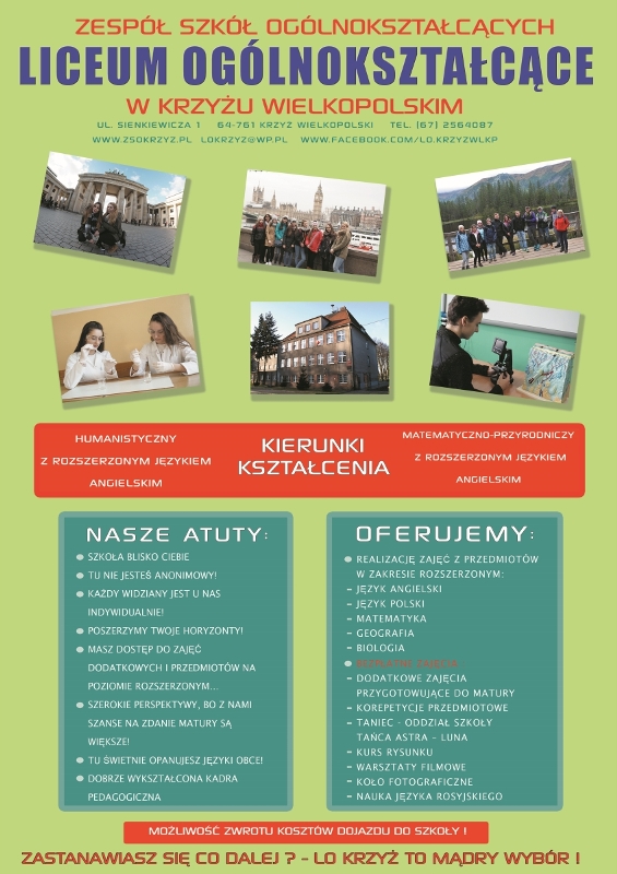 Zapraszamy do Liceum Ogólnokształcącego w Krzyżu Wlkp.