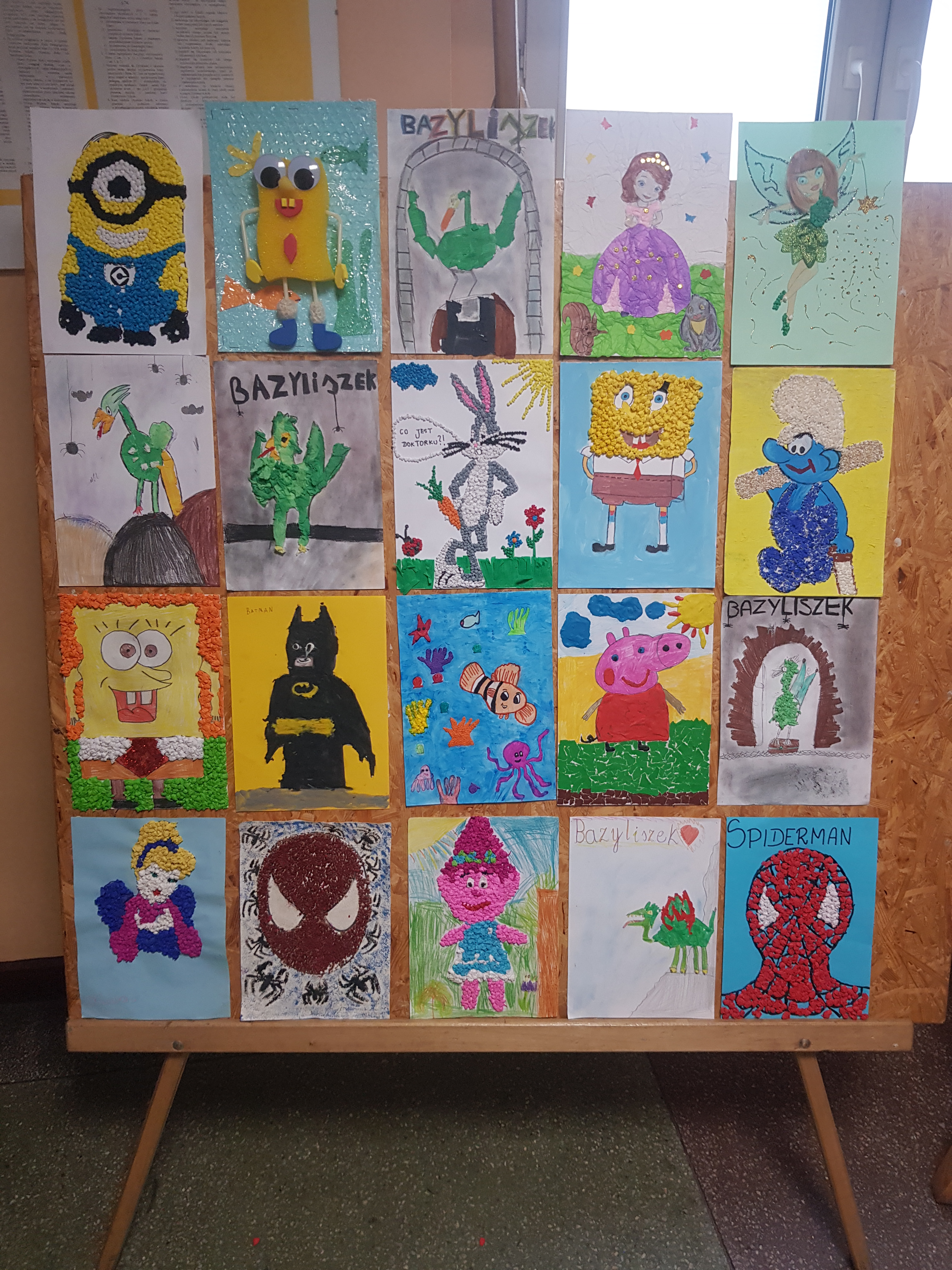 W listopadzie 2019 r. został przeprowadzony konkurs plastyczny „Moja ulubiona postać z bajki”. Konkurs ten adresowany był do wszystkich dzieci z klas I -III uczęszczających do naszej szkoły. Zadaniem wychowanków było wykonanie pracy plastycznej dowolną techniką. Celem konkursu było propagowanie bajek i baśni oraz twórczości literackiej dla dzieci, rozbudzanie wyobraźni i fantazji, rozwijanie zdolności manualnych, wdrażanie do estetycznego wykonywania prac.