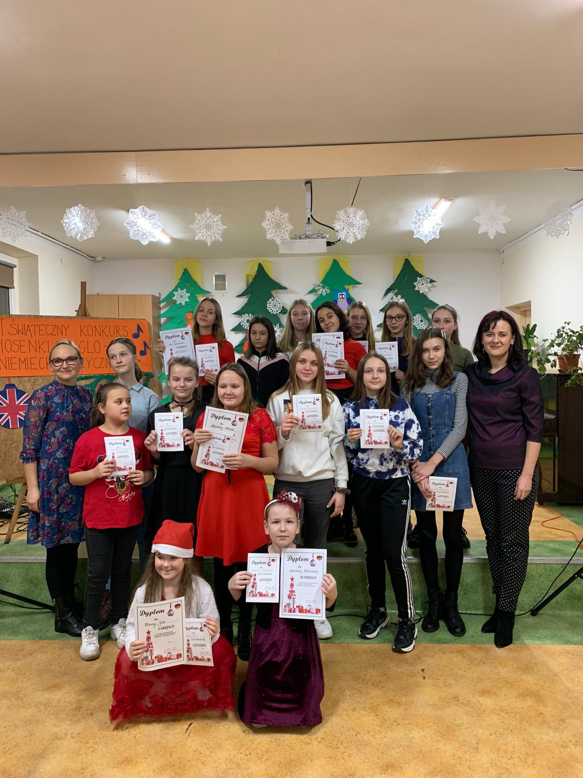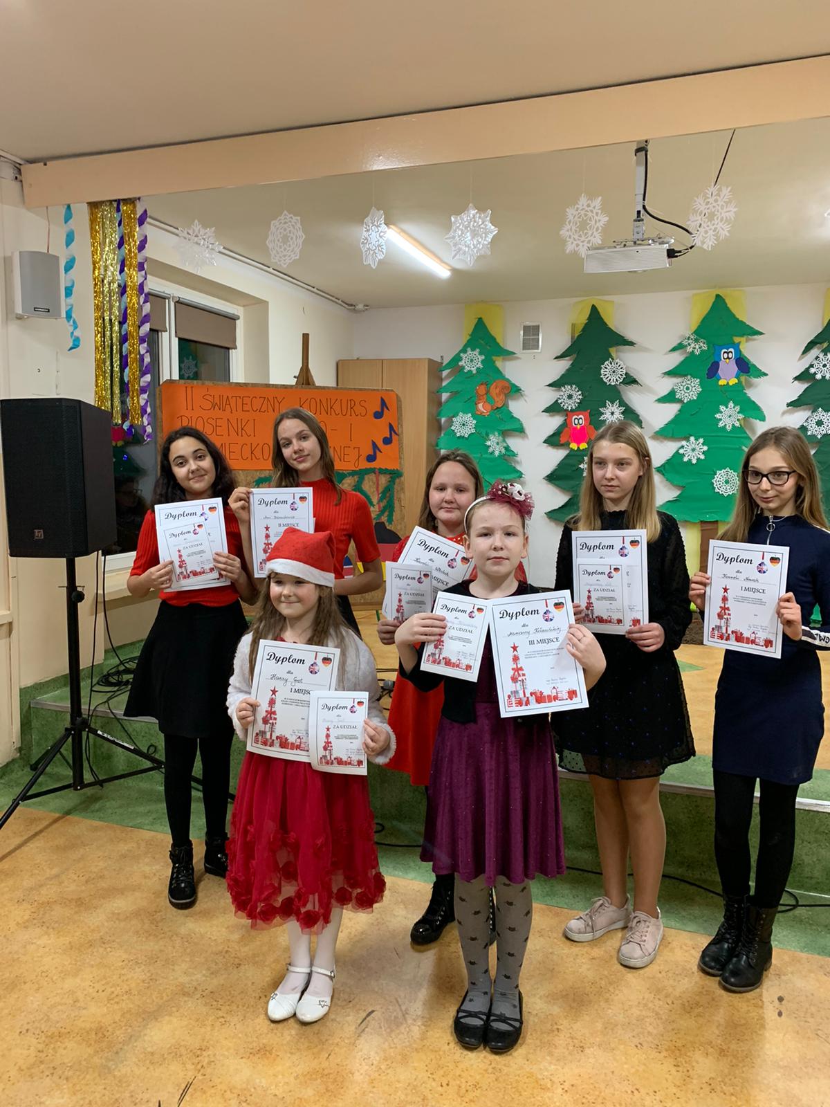 We wtorek 7 stycznia odbył się II Konkurs Piosenki Anglo i Niemieckojęzycznej. W konkursie wzięli udział uczniowie klas I – VIII szkoły podstawowej. Uczestnicy zaprezentowali się w kategoriach soliści oraz zespoły. W jury zasiadały panie mgr Hanna Gapska – nauczycielka muzyki, mgr Małgorzata Skiera - Juchniewicz - nauczycielka języka angielskiego oraz mgr Katarzyna Mazur - Kina – nauczycielka muzyki.