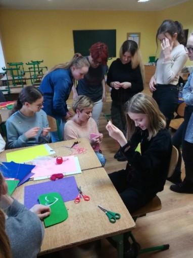 W piątek 21 lutego br. w świetlicy szkolnej odbyły się warsztaty krawieckie prowadzone przez p. Joannę Szybilską. Uczestniczące w zajęciach członkinie Szkolnego Klubu Wolontariatu miały okazję rozwinąć swoje umiejętności krawieckie, co okazało się prawdziwym wyzwaniem, ale dało dużo satysfakcji.