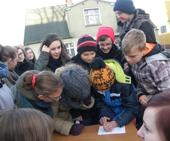 Myślę, że nie wszyscy uczniowie zauważyli, iż miejsca, które odwiedzaliśmy były związane z Dniem Niepodległości. Tego dnia była ładna, choć mroźna pogoda. Wszyscy ciepło ubrani, po ustawieniu się przed szkołą mogliśmy kierować się według mapy do pierwszego punktu. Każda klasa wychodziła w teren w odstępach 15 minutowych. W każdym punkcie czekali uczniowie naszej szkoły z opiekunem oraz z zadaniami dla nas.