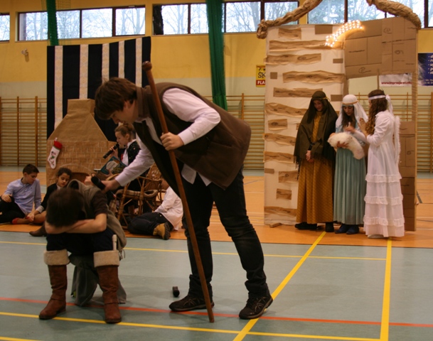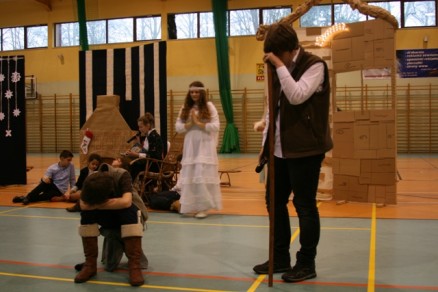 W przedstawieniu udział wzięli uczniowie klas I – III, którzy starali się przypomnieć najprostsze, wydawałoby się , prawdy Bożego Narodzenia: ludzie od zawsze szukają Boga, ale trzeba zatrzymać się w codziennej gonitwie, aby dać sobie szansę na odnalezienie Go. Taką okazją są właśnie nadchodzące święta i nie powinniśmy jej zmarnować - tak istotę Bożego Narodzenia podkreślało końcowe orędzie z betlejemskiej groty.