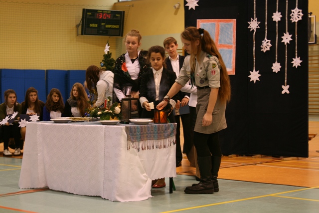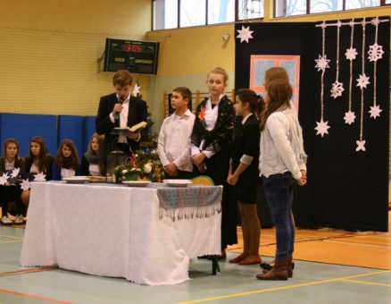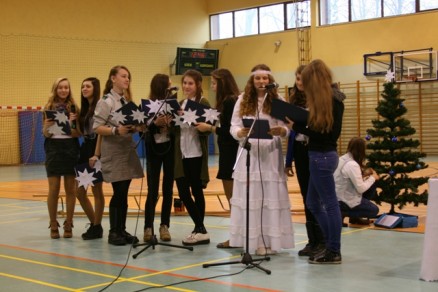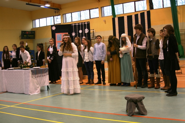 Wystąpili: Maria Hliwa, Mateusz Szumowski, Aleksandra Borowska, Julia Koczerba, Alicja Dymek, Katarzyna Schilling, Łukasz Tomaszewski, Agata Twarowska, Michał Jaworski, Marek Smoliński, Lidia Świnoga, Paulina Przyłucka, Joanna Tutak, Kinga Kluska, Adam Zatycki, Olga Kołacińska, Dawid Kaźmierczak, Weronika Świetlik, Bernadeta Piątek. Śpiewały pięknie solistki Patrycja Pintera i Weronika Brenienek oraz chór: Agata Burzyńska, Lidia Świnoga, Zuzanna Noji, Monika Mikus, Magda Sowa, Maria Hliwa, Małgorzata Klekota i Olga Kołacińska. Tradycji stało się zadość. Występującym uczniom i ich opiekunom podziękowała pani dyrektor Renata Dahmani, która zaprosiła przybyłych gości i pracowników szkoły na spotkanie opłatkowe. Wszystkim życzymy Wesołych Świąt!