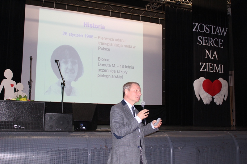 Prof. Głyda, który jest ordynatorem Oddziału Transplantologii i Chirurgii Ogólnej z Pododdziałem Urologii w Szpitalu Wojewódzkim w Poznaniu, przybliżył aspekty medyczne oraz prawne związane z przeszczepianiem narządów. Pan profesor przedstawił krótką historię transplantacji, wyjaśnił również: co to jest śmierć mózgowa, kiedy można pobrać organy do przeszczepu oraz w jaki sposób można pozyskać organy (od żywego dawcy oraz od dawcy zmarłego), jakie są obowiązki lekarza i warunki prawne pobierania narządów w celu ich przeszczepienia.