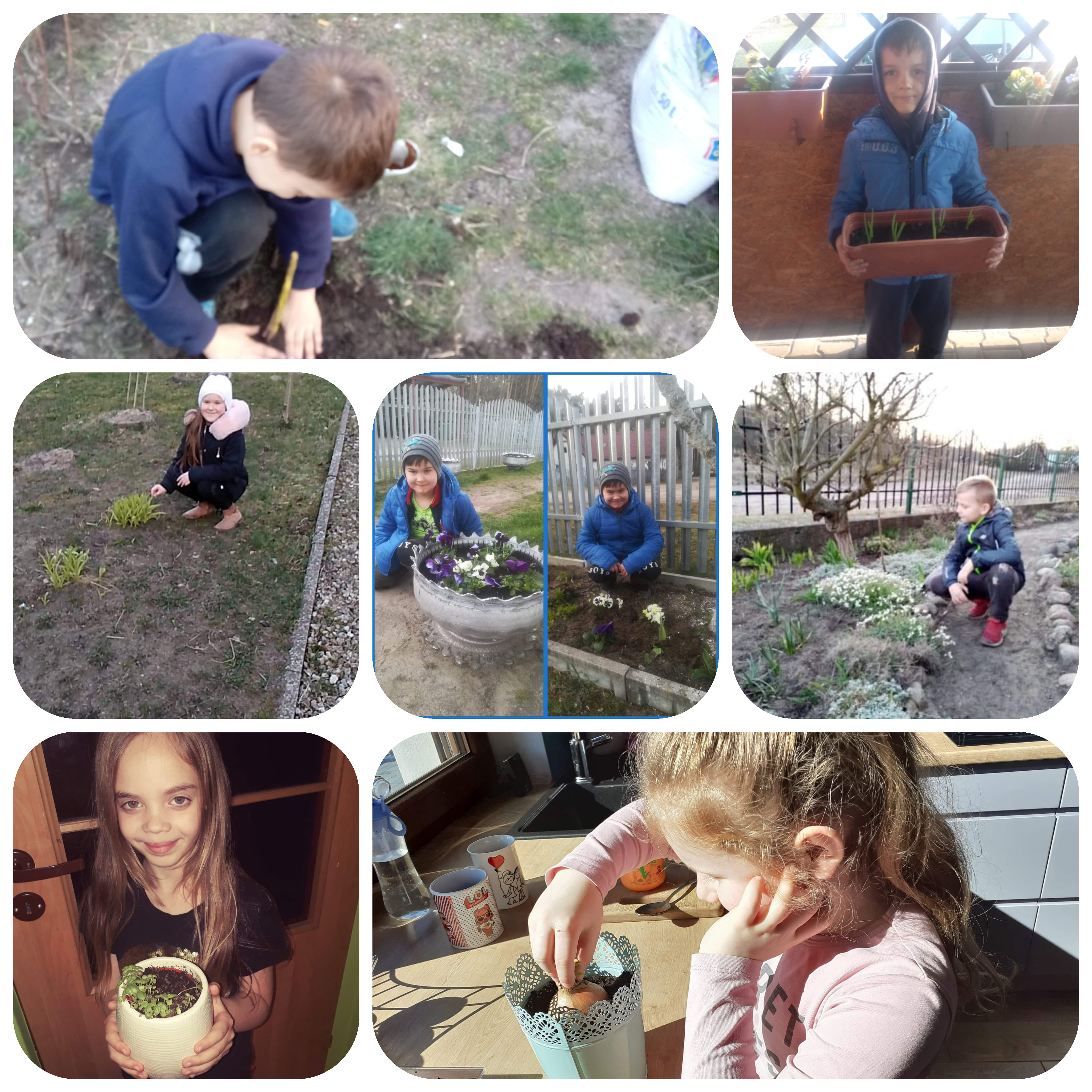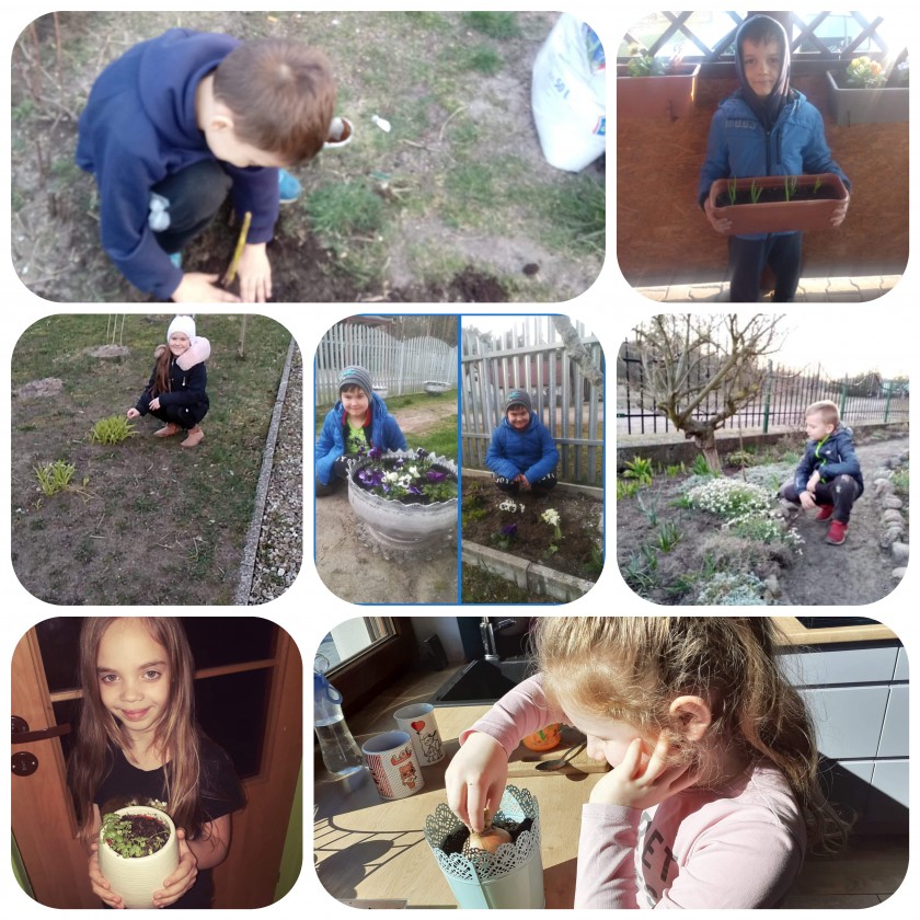 Uczniowie klasy I a i c chętnie podejmują nowe wyzwania, które są zawarte w naszej innowacji pedagogicznej. Bardzo lubią uczestniczyć w nieznanych dotąd sytuacjach oraz aranżować nowe. Zajęcia praktyczne dają dzieciom możliwość samodzielnego działania oraz wykazania się wiedzą i umiejętnościami. Niestety, trudna sytuacja związana z pandemią, uniemożliwiła nam realizację niektórych zadań w szkole. Jednym z tych zadań było założenie zielonych ogródków klasowych. Nasze dzieci są bardzo ambitne i kreatywne, więc takie ogródki przy pomocy rodziców założyły w swoich domach. Ogromne brawa zarówno dla dzieci jak i ich rodziców, którzy są dla nich wielkim wsparciem.