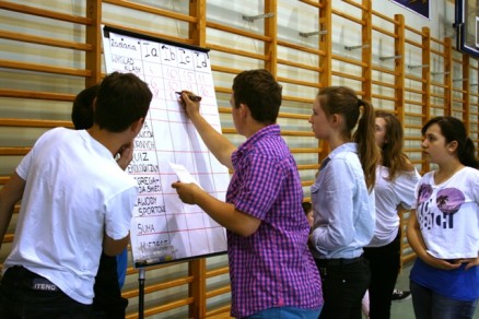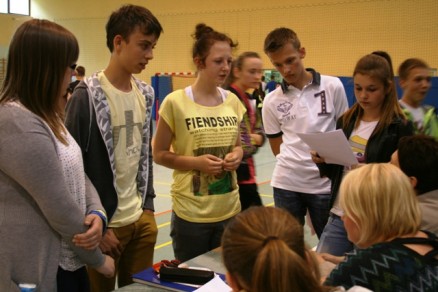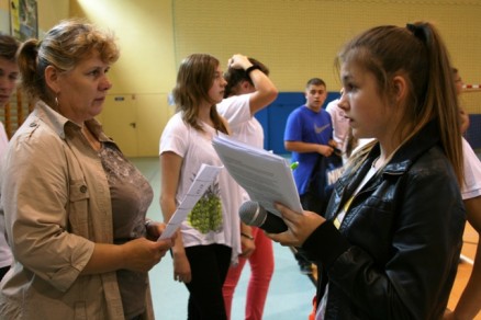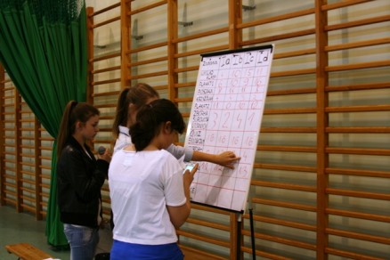 Ocenianiem prac i wyłonieniem zwycięzcy każdej konkurencji zajęło się Jury, w składzie: p. M. Borucka - Andrzejewska, p. A. Lachman, p. A. Nagórska i przewodnicząca Samorządu Uczniowskiego Paulina Kubiś. Oprócz wcześniej zapowiedzianych zadań na pierwszaków czekało również kilka niespodzianek, np. układanie krzyżówek (po dwie lub trzy osoby z każdej klasy), rozwiązywanie quizu ekologicznego (po trzy osoby z klasy) i segregacja śmieci na czas. Na koniec nadszedł czas na rozstrzygające zawody sportowe, pięć torów przeszkód, zwanych też po prostu „wyścigami rzędów”, w których zmierzyły się ze sobą dziesięcioosobowe reprezentacje każdej klasy. Ostatecznie zwycięzcą turnieju została 1C z wynikiem 96 punktów, drugie miejsce zdobyły 1 B i 1 D - obydwie po 80 punktów, a trzecie miejsce przypadło 1 A , 63 punkty. Gospodarze Gimnazjaliów, uczniowie klasy 2 B, zaprosili kolegów z 1 C i uroczyście przekazali im drewniany klucz, symbol zwycięzców. Bardzo nas cieszy, że wszyscy zawodnicy stosowali się do zasad zabawy fair play. Mamy nadzieję (choć bez kilku wesołych wpadek się nie obyło), iż wszystkie pierwszaki spędziły czas w miłej i sympatycznej atmosferze. Gratulujemy wszystkim uczestnikom, bez względu na wyniki, a klasie 1 C i jej wychowawcy, p. Magdalenie Niedźwieckiej życzymy dobrej zabawy i radości w przygotowywaniu następnych Gimnazjaliów.