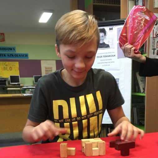 W ostatni wtorek listopada 2019 r. w bibliotece szkolnej odbył się konkurs rozwijający logiczne myślenie i sprawność manualną przygotowany przez nauczyciela bibliotekarza Małgorzatę Borucką - Andrzejewską.