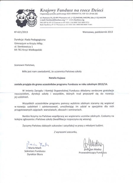 Pierwsze miejsca, honorowane ocenami celującymi, dyplomami i nagrodami książkowymi, zajęli: